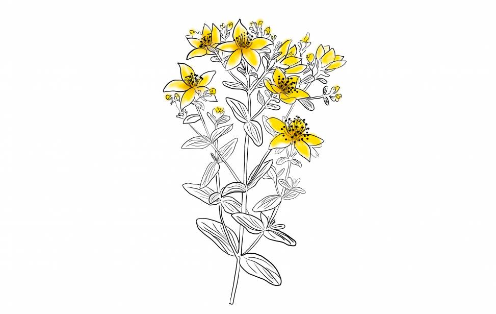 Dziurawiec (Hypericum perforatum) - krziżewé zelé, arnika; bňżé drzéwkň; kňscelnica; bňżôkrewka